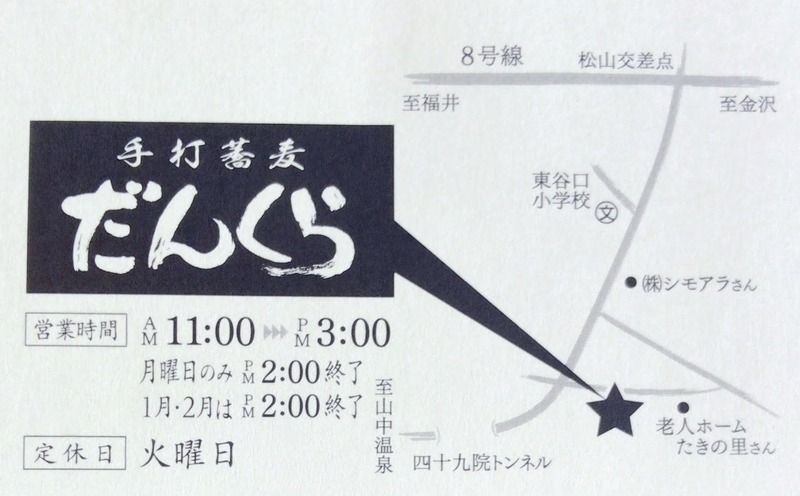 山中温泉のすぐ近くにある「だんくら」というお蕎麦屋さんに行ってきました。