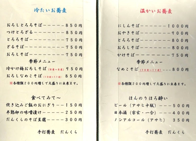 メニューは蕎麦中心です。大盛りが200円増しというのは良心的ですね。