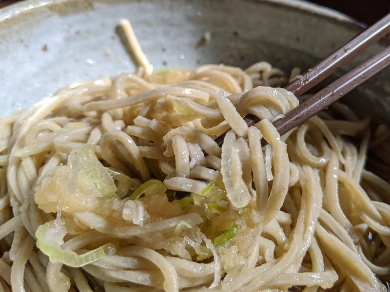 実は、出汁を使わないで食べようとしたのですが、すでに麺の器には少し出汁が入れられていました。蕎麦の香りを楽しむためには出汁がかけられていないほうがよかったのですが、なにか理由があるんでしょうかね。